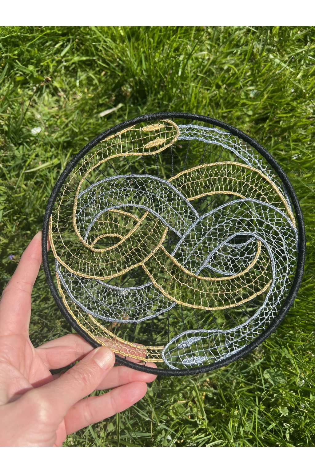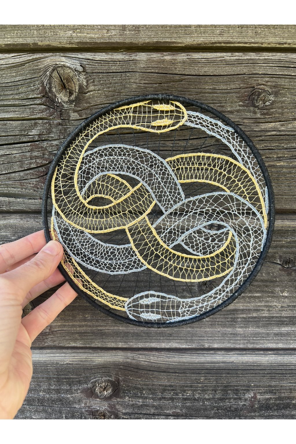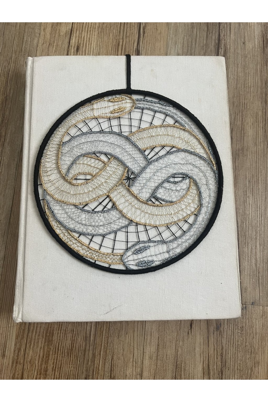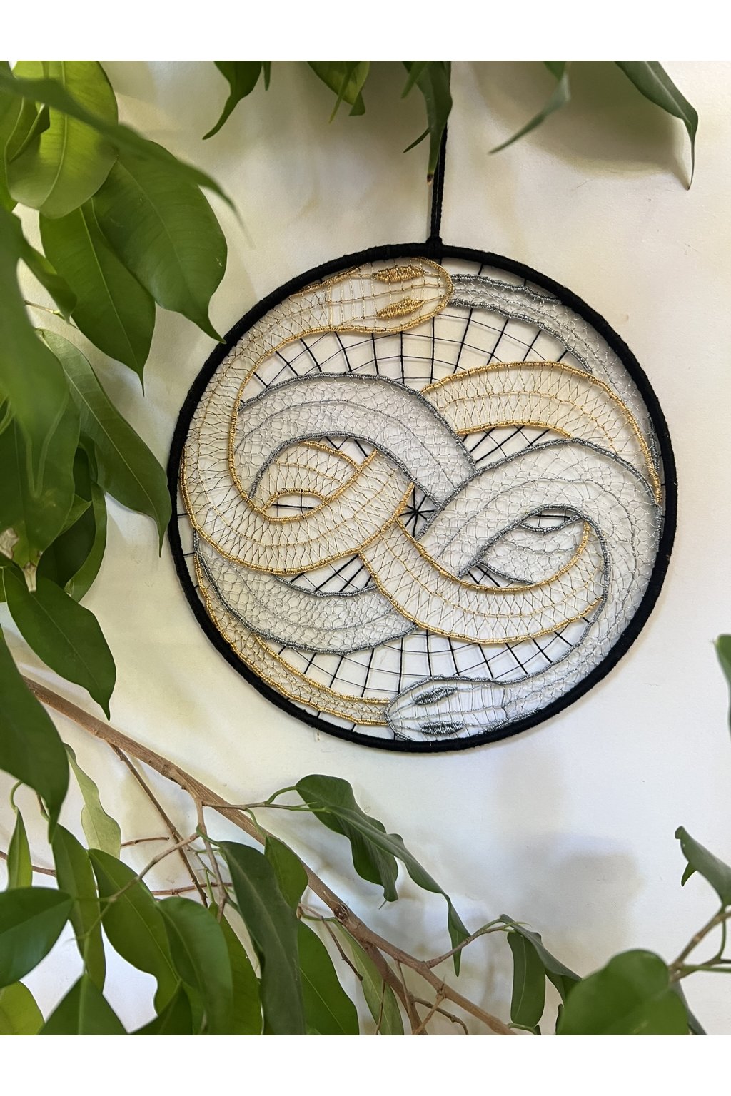 je defacto zdvojený. Uroboros je starodávný symbol, který zobrazuje hada nebo draka požírajícího svůj vlastní ocas, představující cyklickou podstatu věcí - nekonečný návrat od konce k začátku, sebezničení a sebeobnovu. Na některých zobrazeních je Uroboros z poloviny bílý (světlý) a z poloviny černý (tmavý), což naznačuje symboliku jin-jang, znázorňující dualitu věcí a vzájemně se doplňujících opačných principů. Také bývá stočený do tvaru ležící osmičky, symbolu nekonečna.