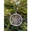 Vánoční ozdoba - Sněhová vločka - radost. Je vytvořený technikou: ručně šitá krajka. Velikost kruhu je 8 cm.