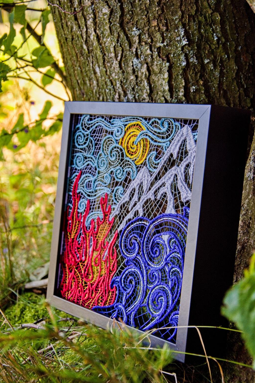 Obraz je vytvořený technikou: ručně šitá krajka.